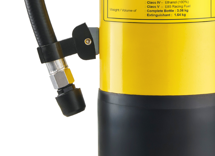 This model is approved across all five FIA fire classes (I–V), providing certified all-in-one protection for motorsport applications. Engineered for high-vibration environments, it features a magnetic hose retainer to ensure secure positioning with instant deployment.