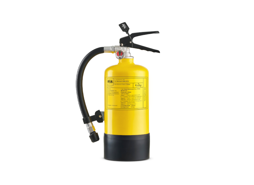 The 1.4 Litre extinguisher forms part of the Firexo Motorsport Range – the only comprehensive line of all-fires portable hand-held extinguishers fully approved to Fédération Internationale de l’Automobile (FIA) 8865-2015 standards.