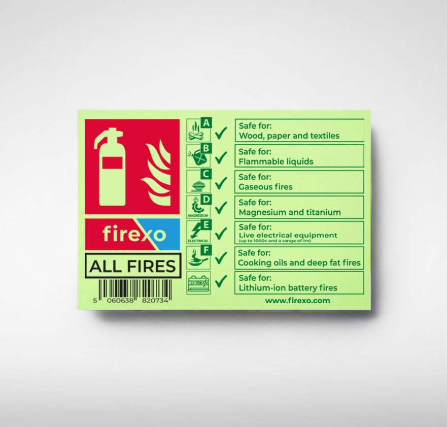 What is the difference between Photoluminescent and Non-Photoluminescent Safety Signs for Firexo Fire Extinguishers?